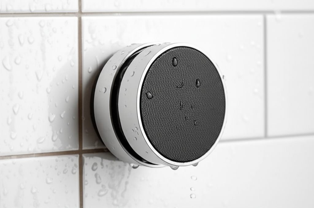 Its powerful suction base sticks firmly to tiles, mirrors, or glass—just mount it on your bathroom wall and enjoy rich sound while you relax.
